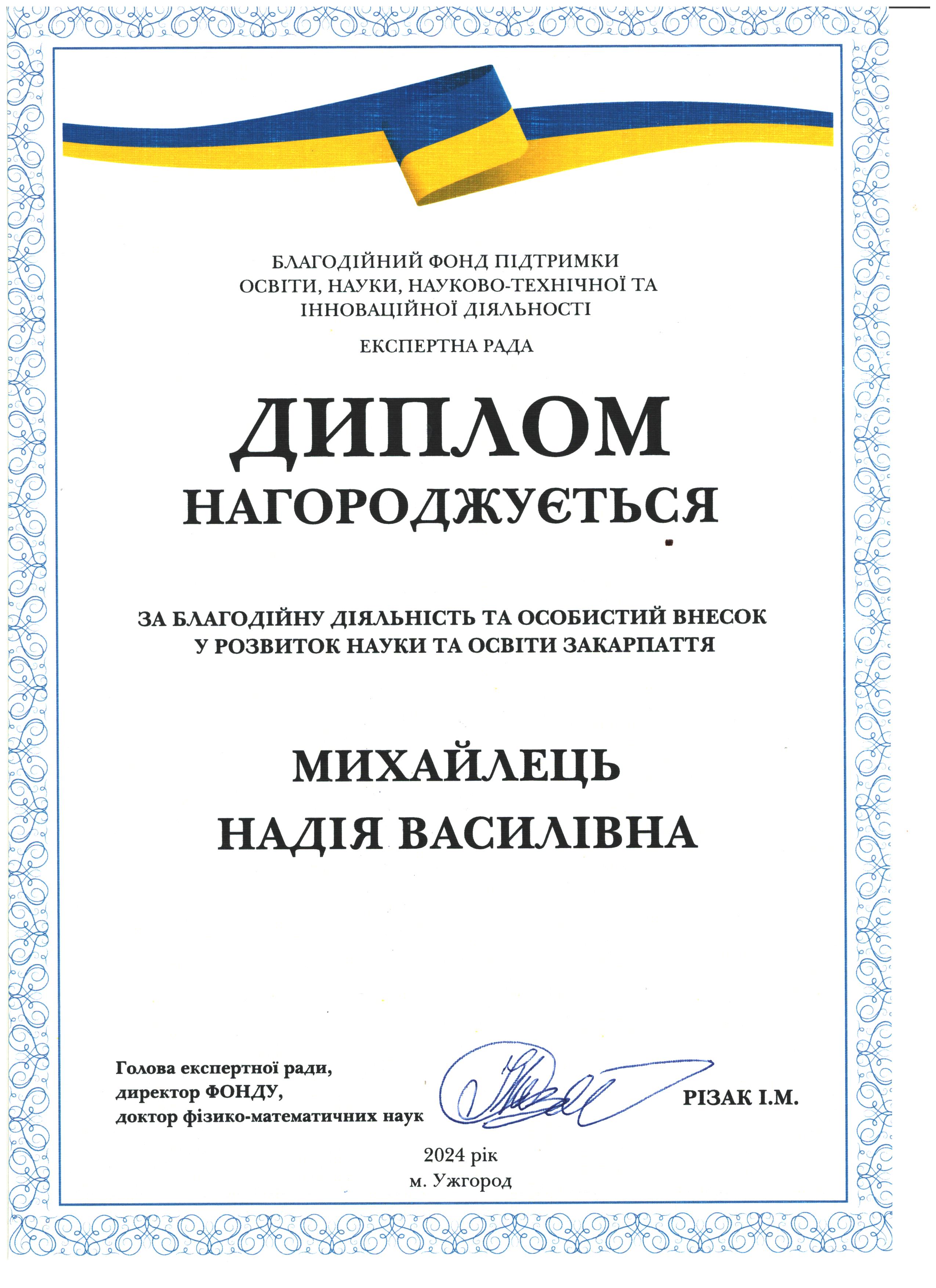 Дякуємо Надії Василівні Михайлець за сприяння у розвитку науки і освіти Закарпаття!