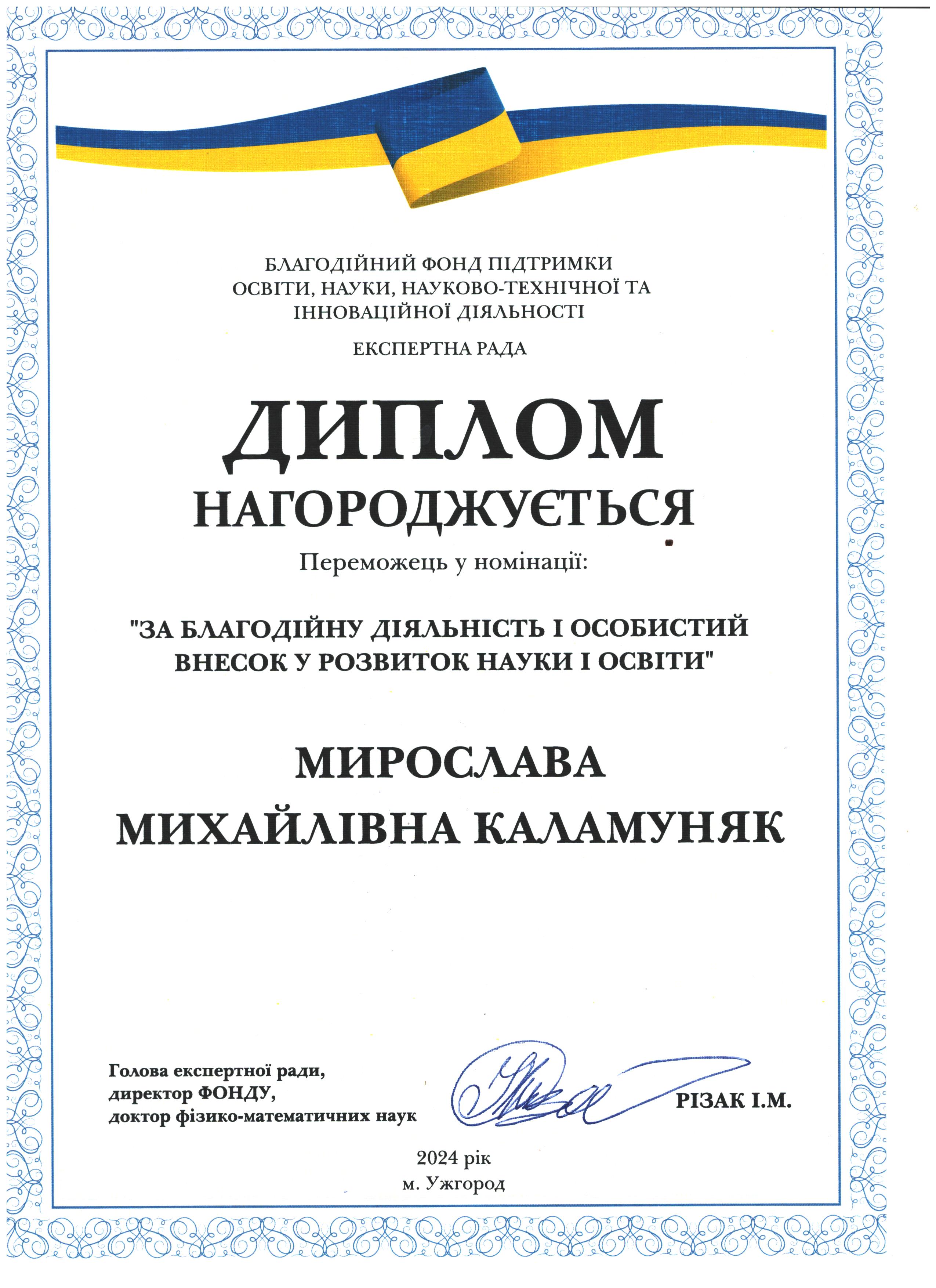 Дякуємо Мирославі Михайлівні Каламуняк за сприяння у розвитку науки і освіти Закарпаття!