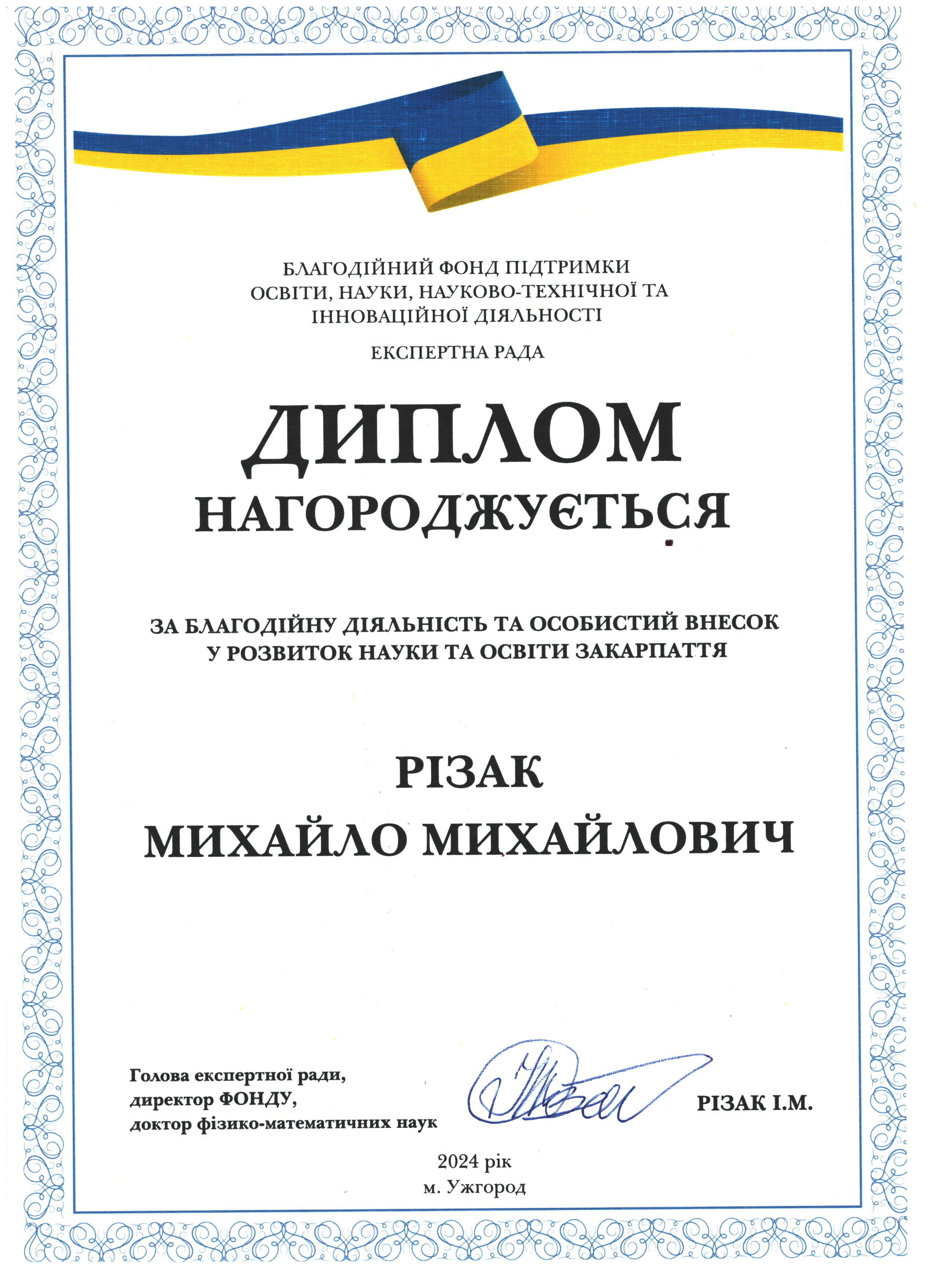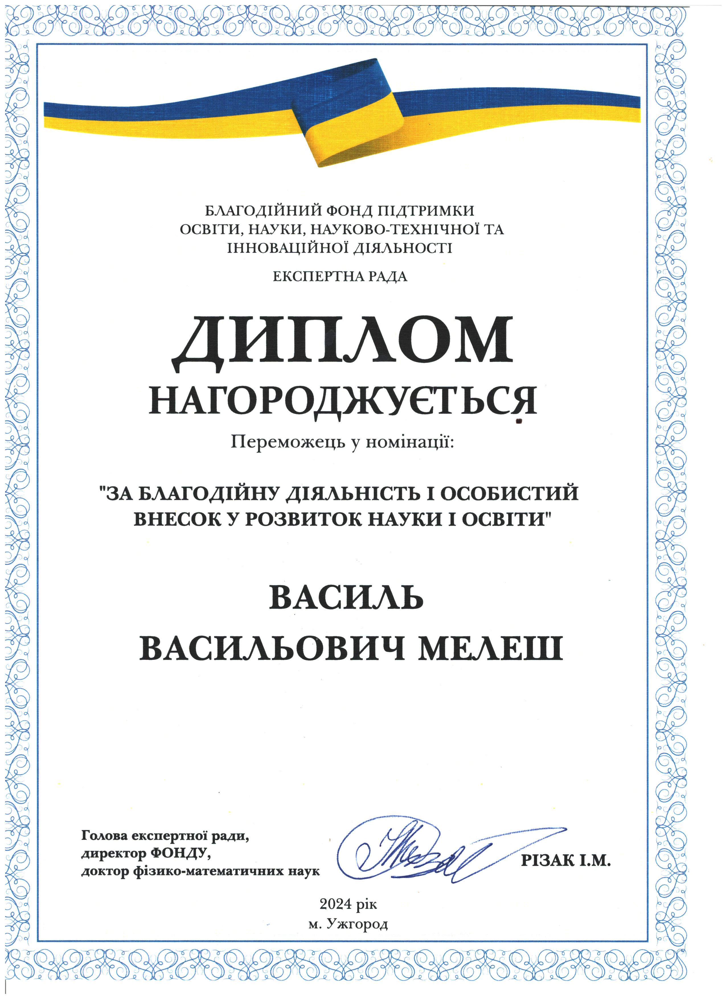 Дякуємо Михайлу Михайловичу Різаку за сприяння у розвитку науки і освіти Закарпаття!