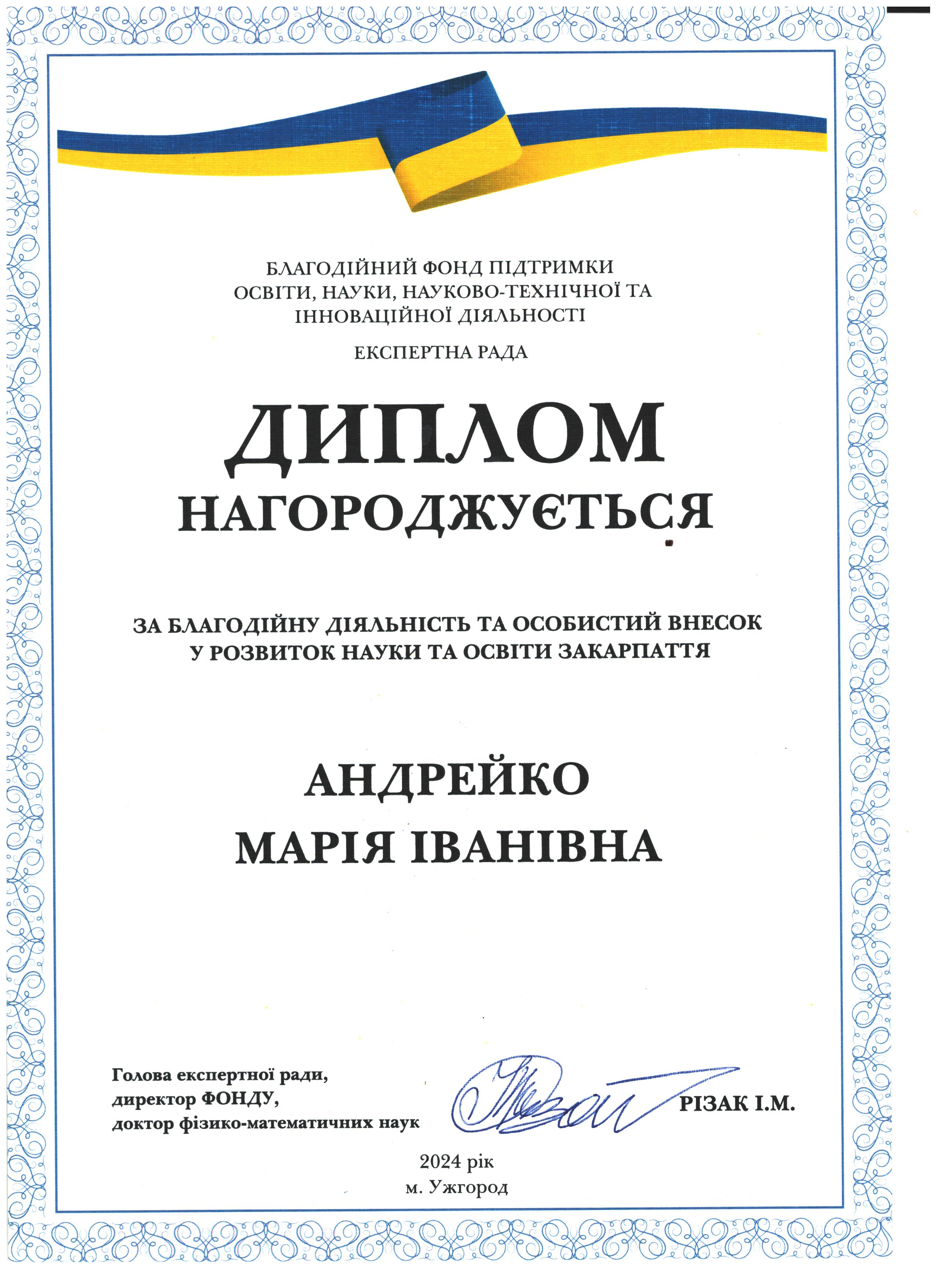 Дякуємо Марії Іванівні Андрейко за сприяння у розвитку науки і освіти Закарпаття!