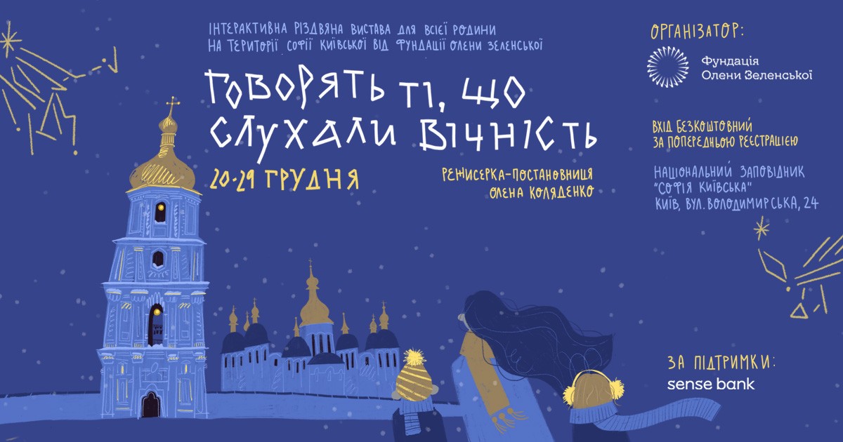 Фундація Олени Зеленської запрошує дітей і дорослих на інтерактивну різдвяну виставу в Софії Київській 20–29 грудня на території Національного заповідника «Софія Київська» оживе інтерактивна вистава «Говорять ті, що слухали вічність», яка поєднує дух української історії й тепло зимових свят.