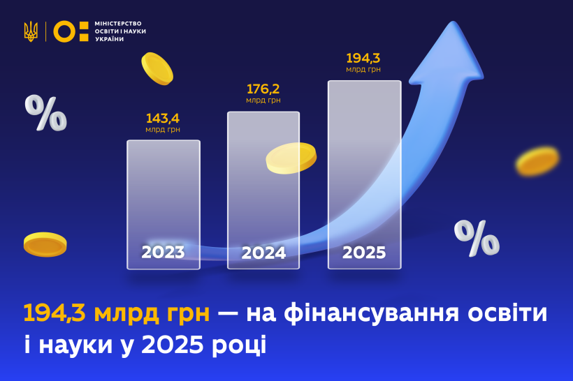 Верховна Рада України ухвалила Державний бюджет на 2025 рік. За останні два роки бюджет на освіту і науку зріс на 35% — з 143,4 млрд грн до 194,3 млрд грн.