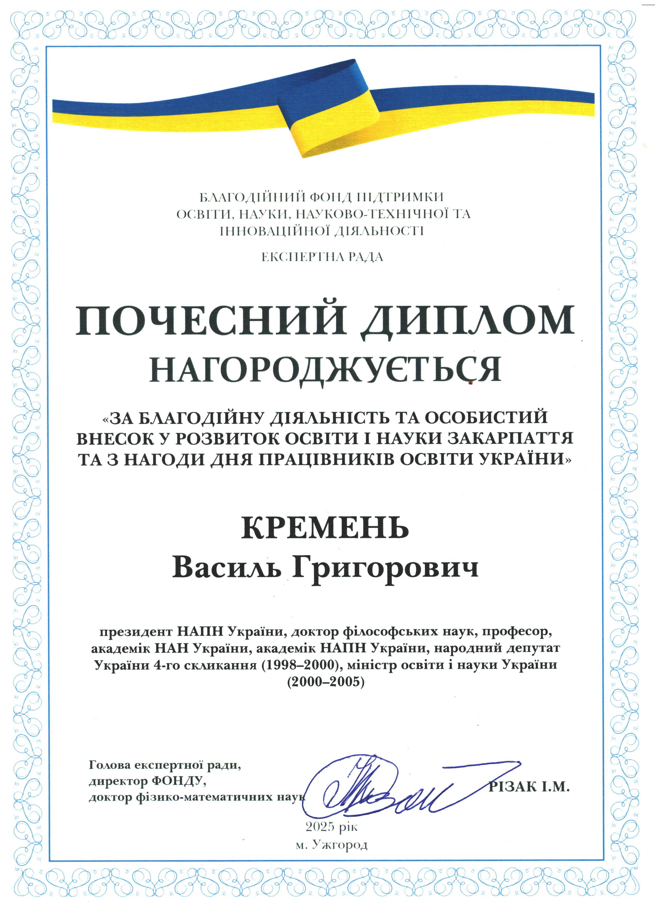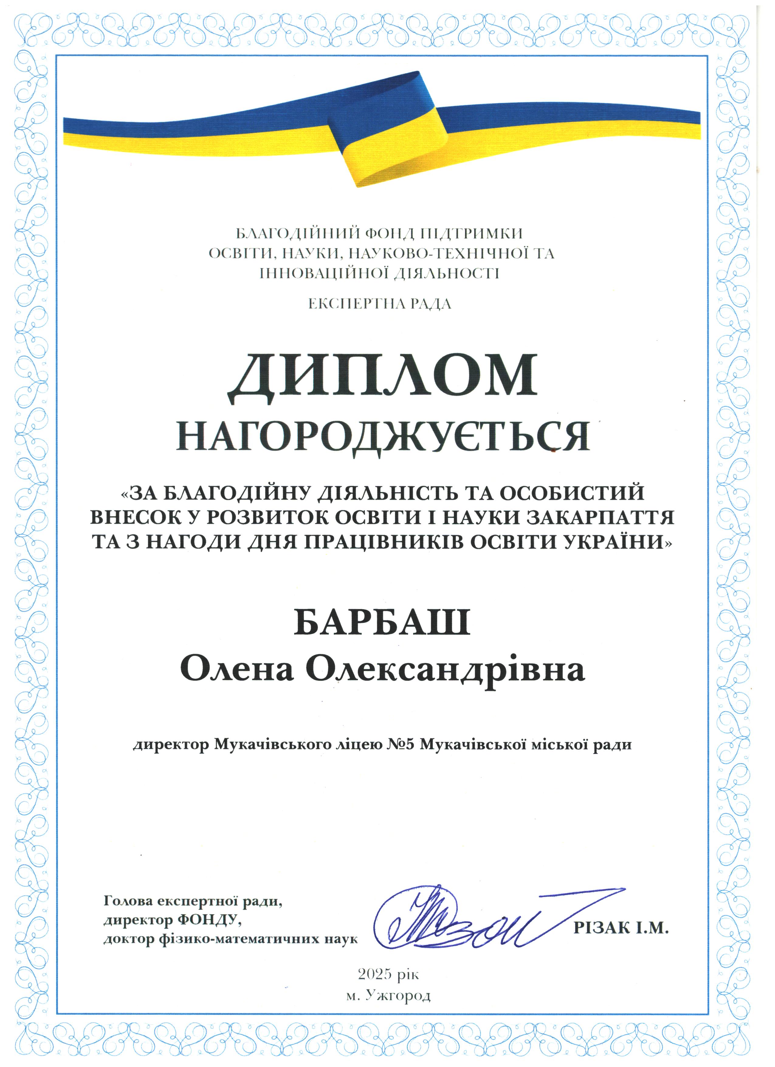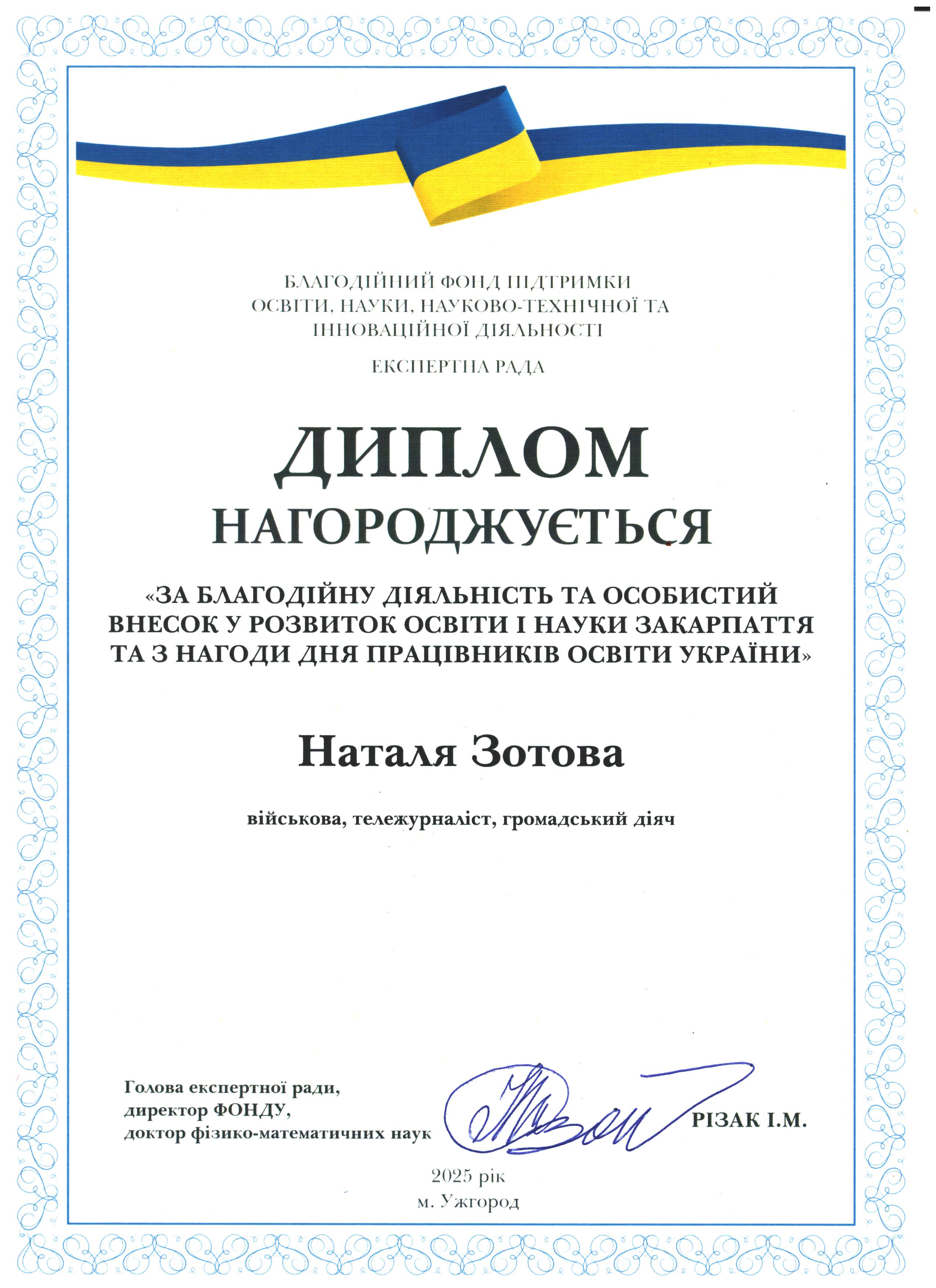 У 2025 році - переможниця у номінації "Жінка III тисячоліття у галузі освіти і науки Закарпаття".