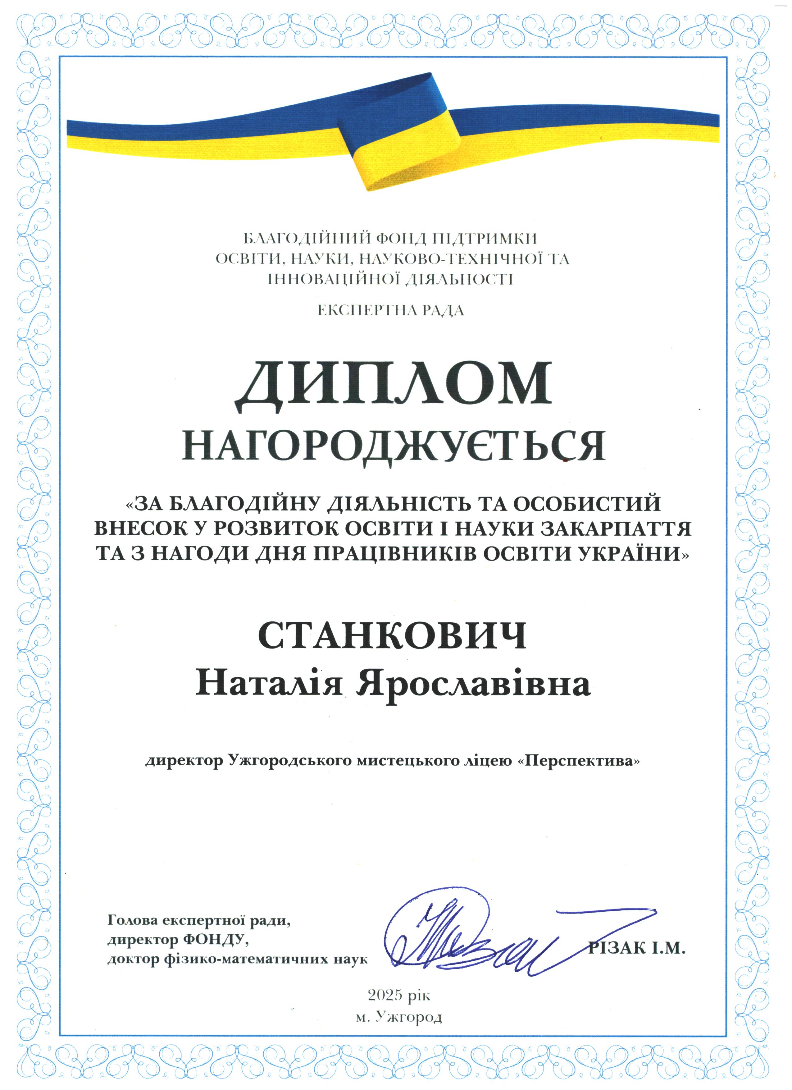 Дякуємо Наталії Ярославівні Станкевич за підтримку освіти і науки Закарпаття!