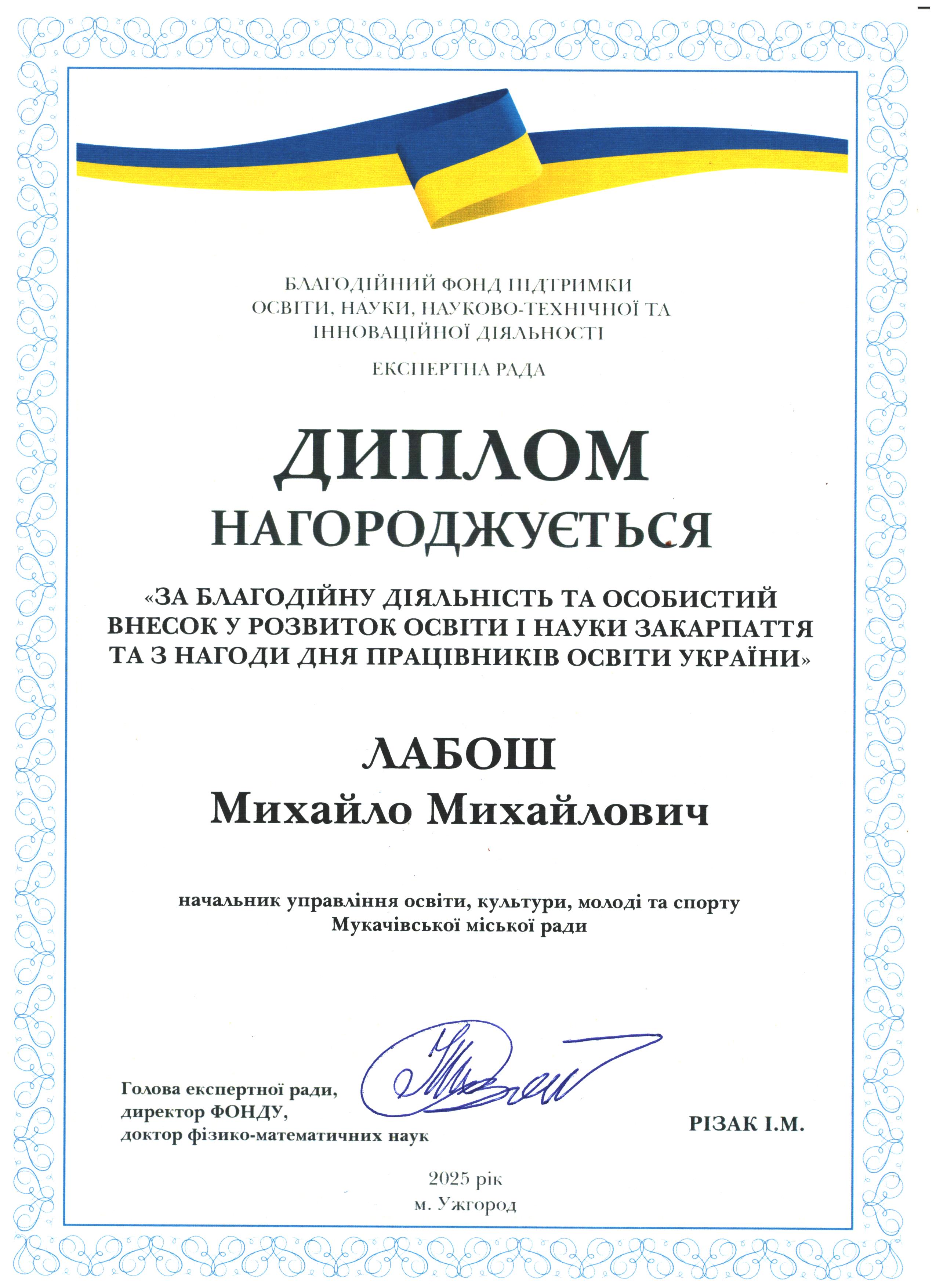 Дякуємо Михайлу Михайловичу Лабошу за підтримку освіти і науки Закарпаття!