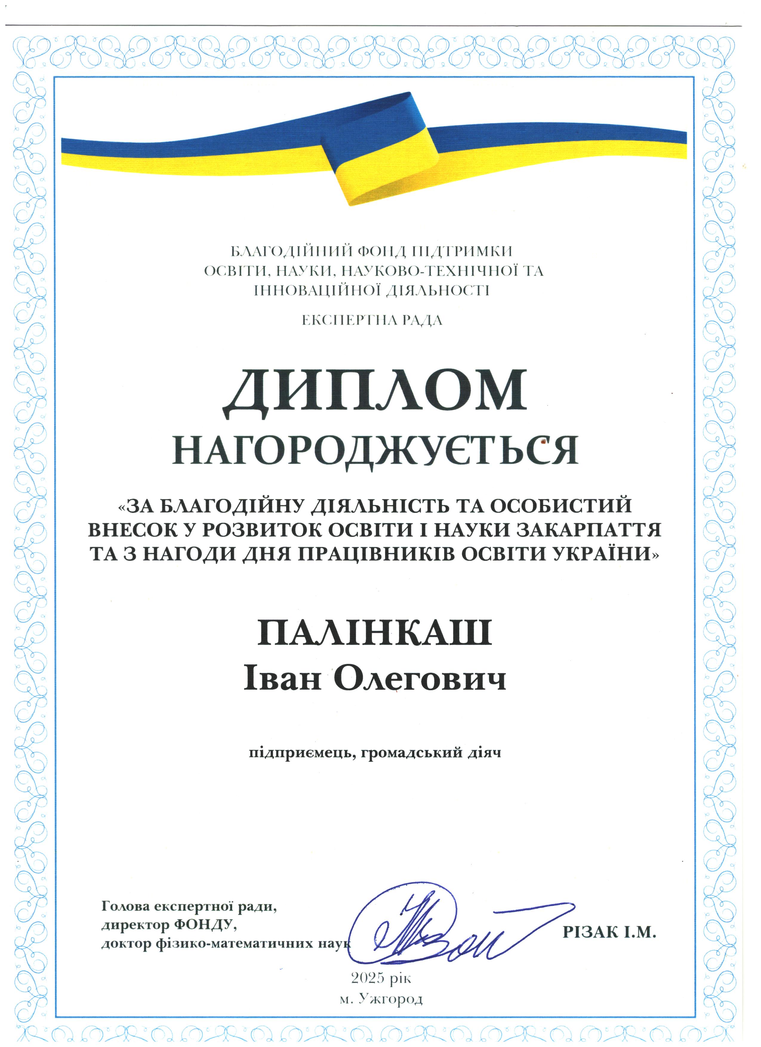 Дякуємо Івану Олеговичу Палінкашу за підтримку освіти і науки Закарпаття!