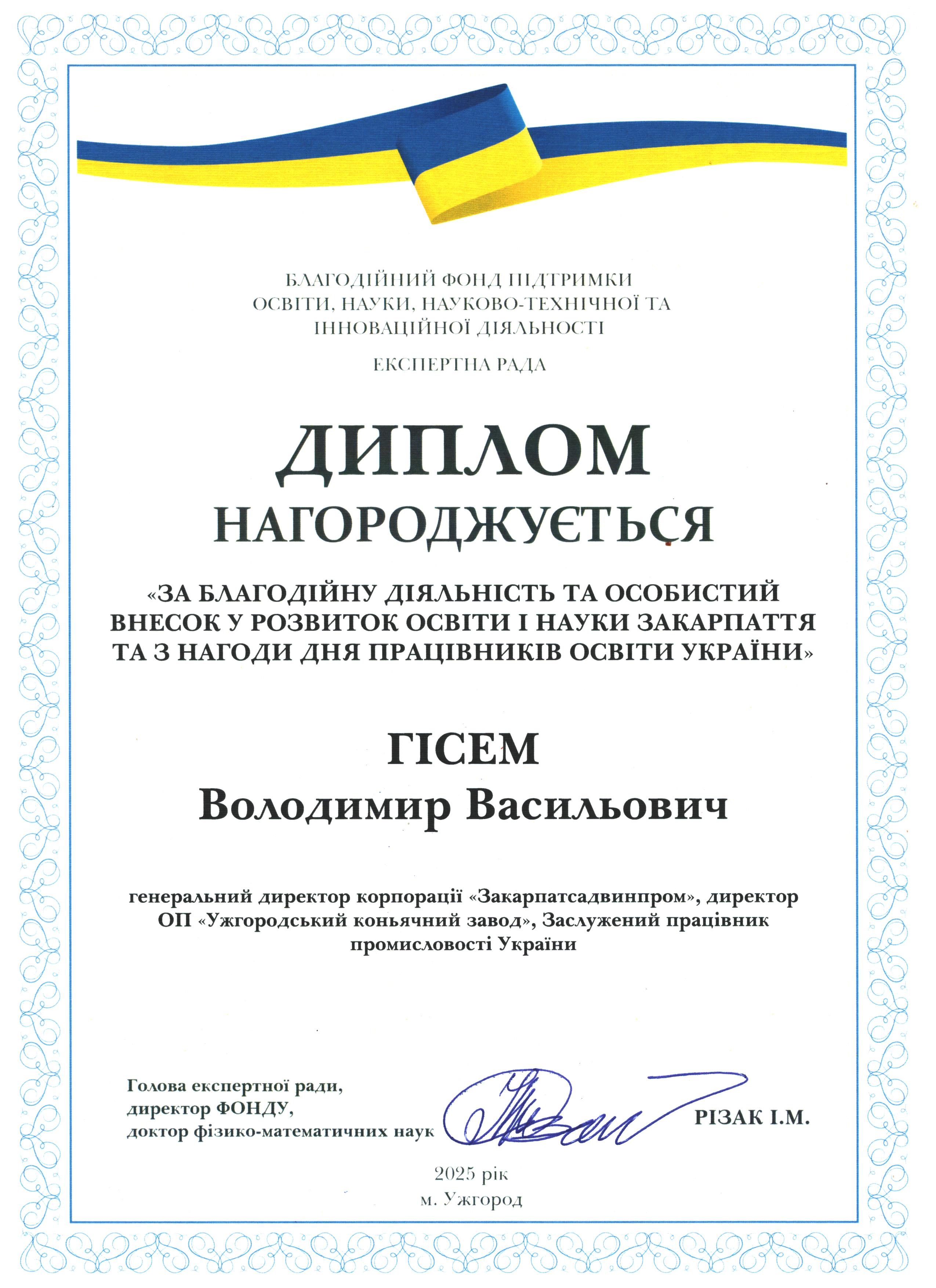 Дякуємо Володимиру Васильовичу Гісему за підтримку освіти і науки Закарпаття!