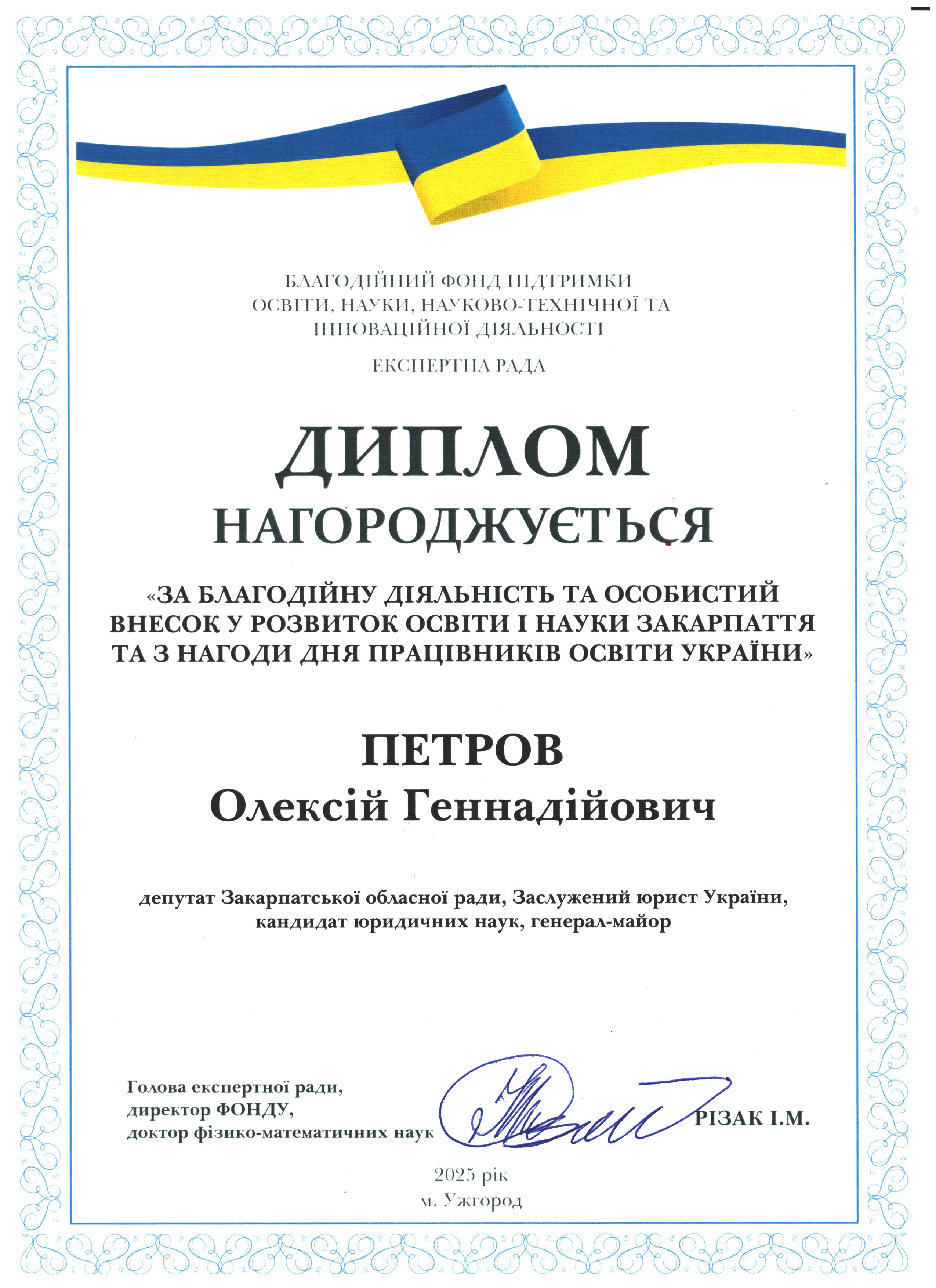 Дякуємо Олексію Геннадійовичу Петрову за підтримку освіти і науки Закарпаття!
