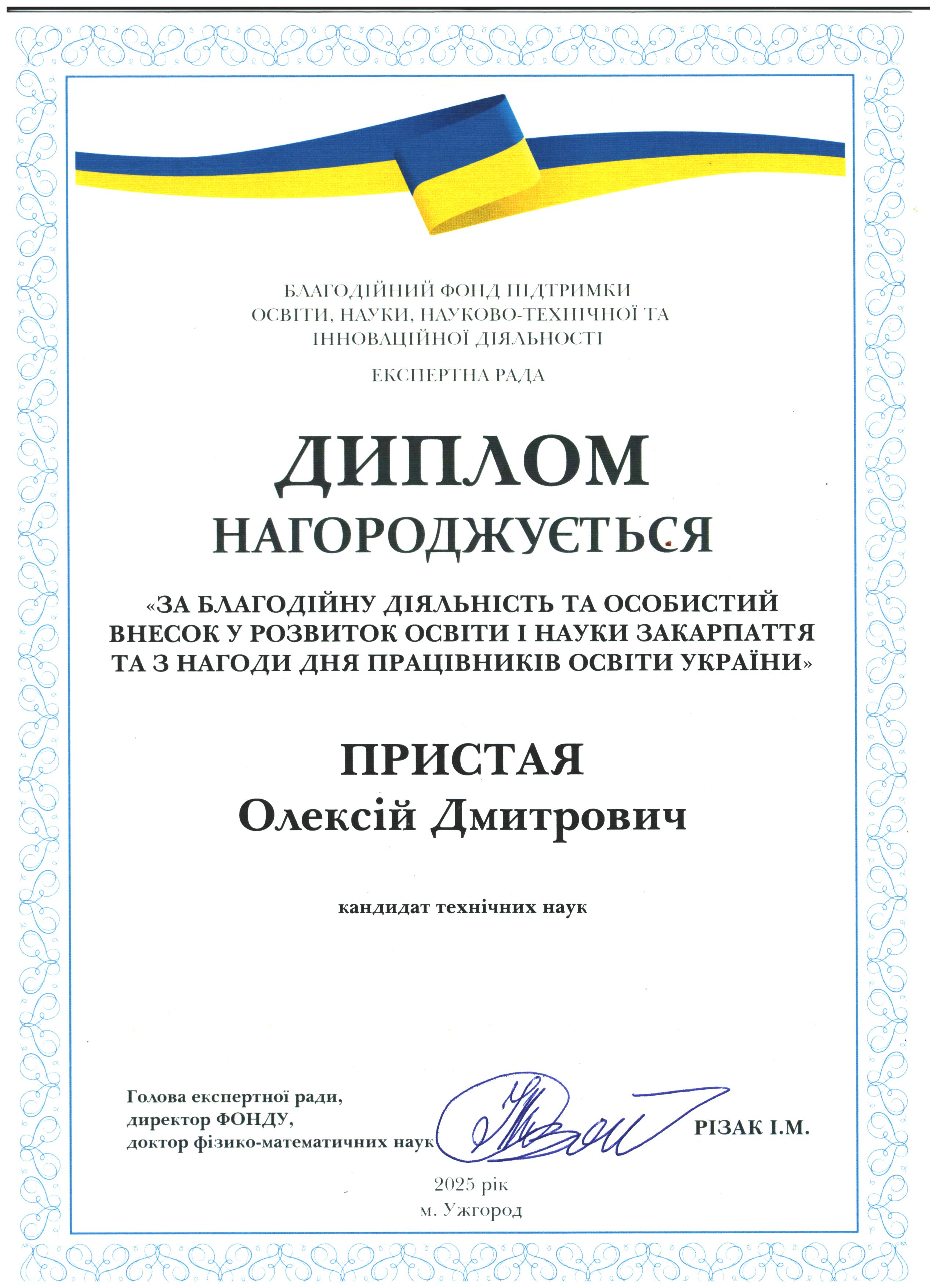 Дякуємо Олексію Дмитровичу Пристаї за підтримку освіти і науки Закарпаття!