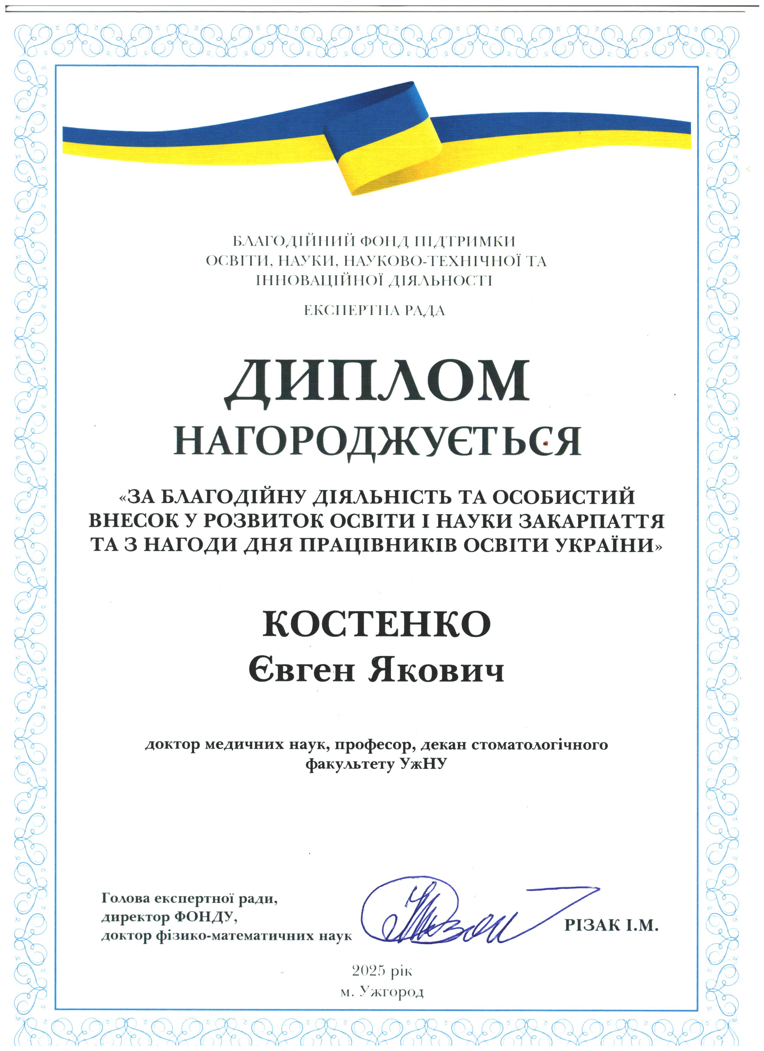 Дякуємо Євгену Яковичу Костенку за підтримку освіти і науки Закарпаття!