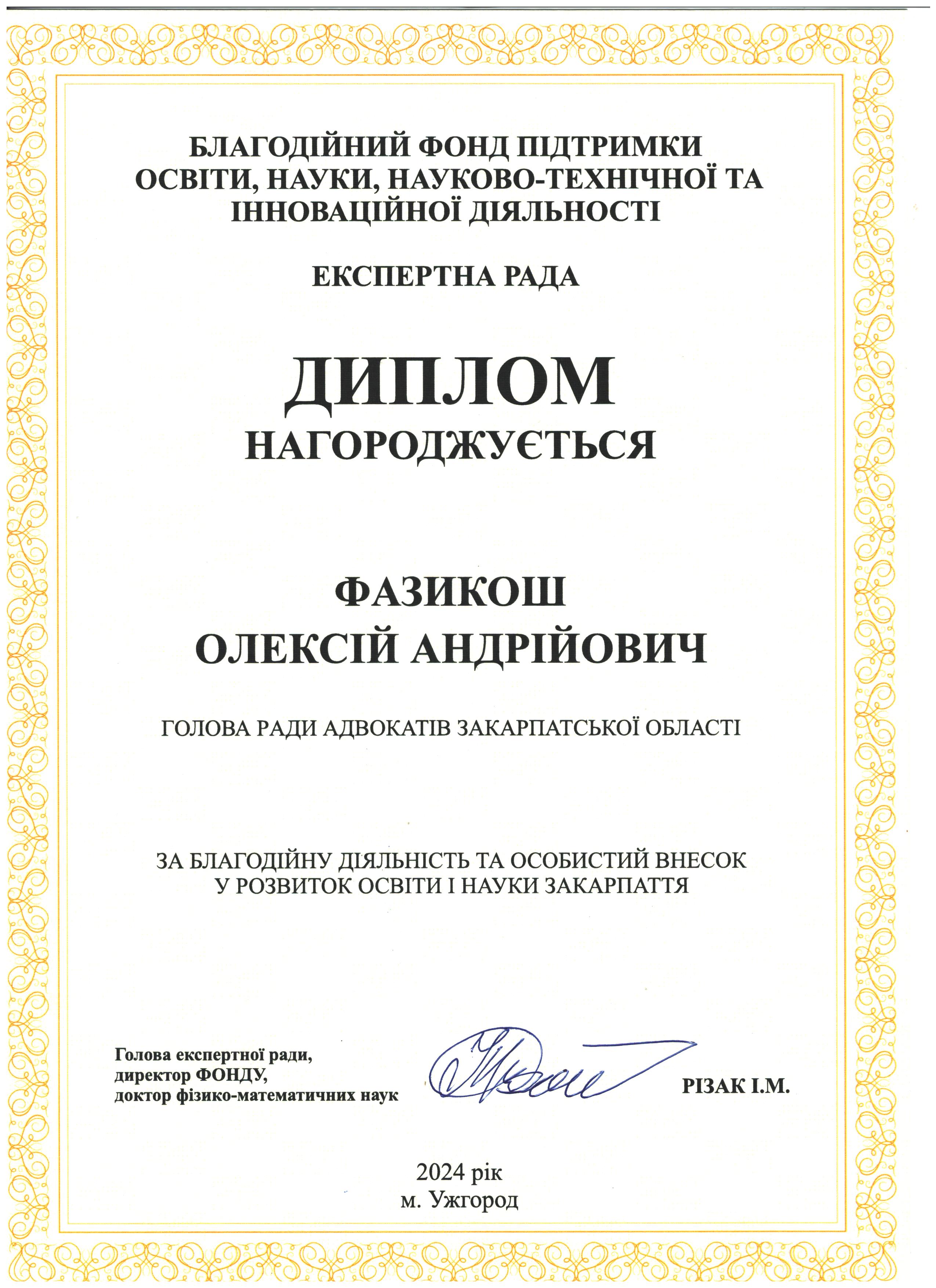 Дякуємо Олексію Андрійовичу Фазикошу за підтримку освіти і науки Закарпаття!
