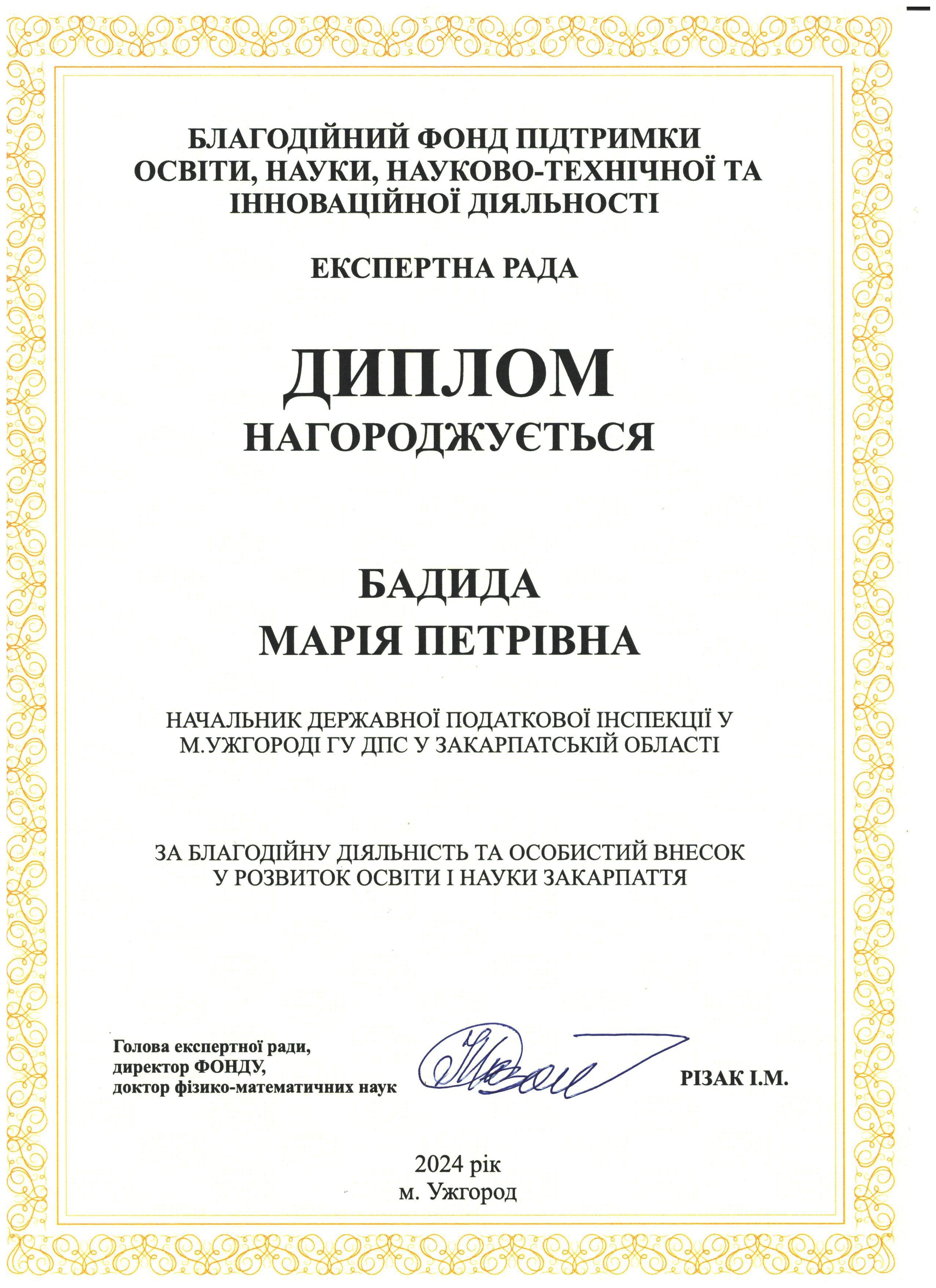 Дякуємо Марії Петрівні Бадиді за підтримку освіти і науки Закарпаття!