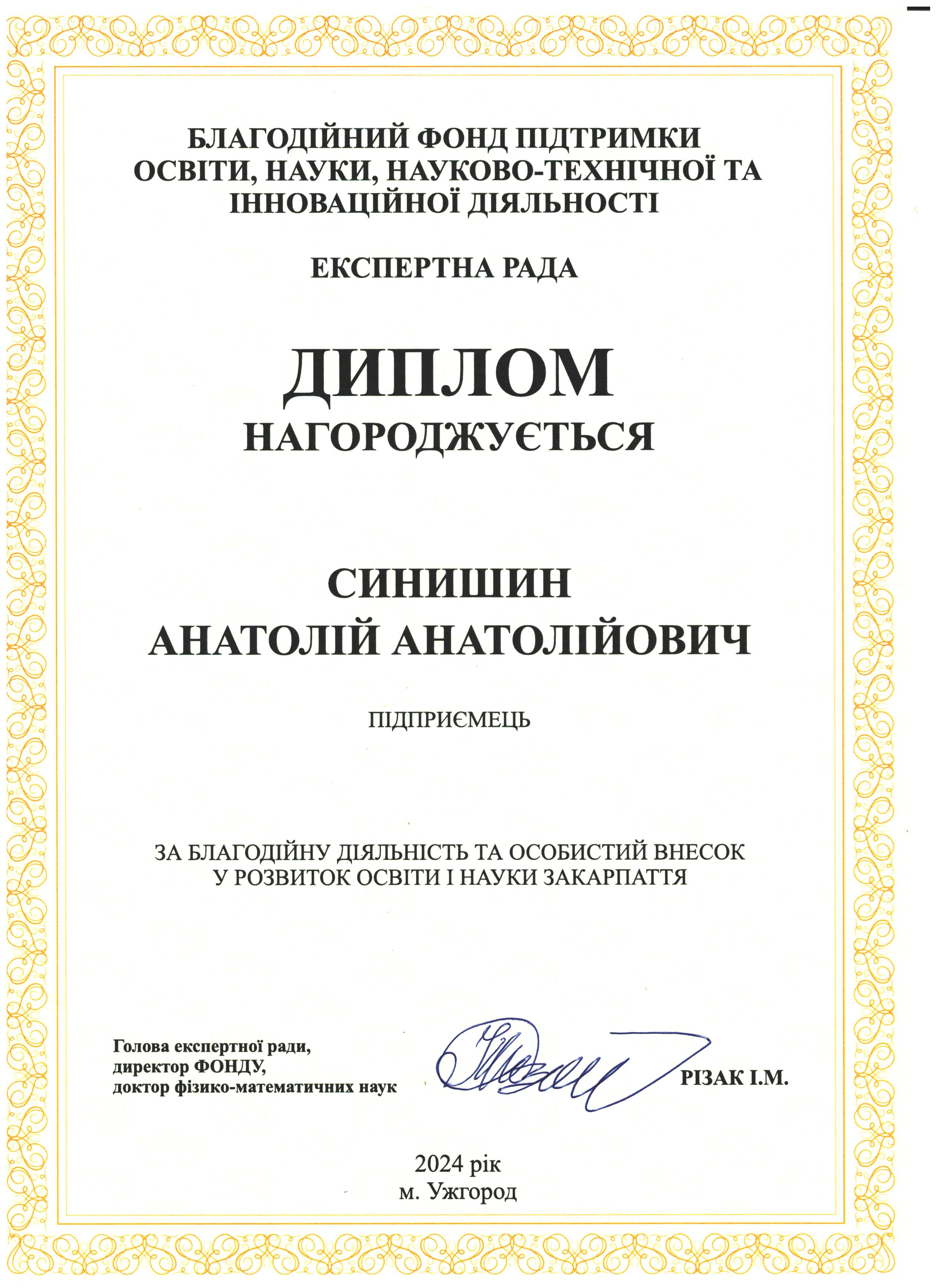 Дякуємо Анатолію Анатолійовичу Синишину за підтримку освіти і науки Закарпаття!