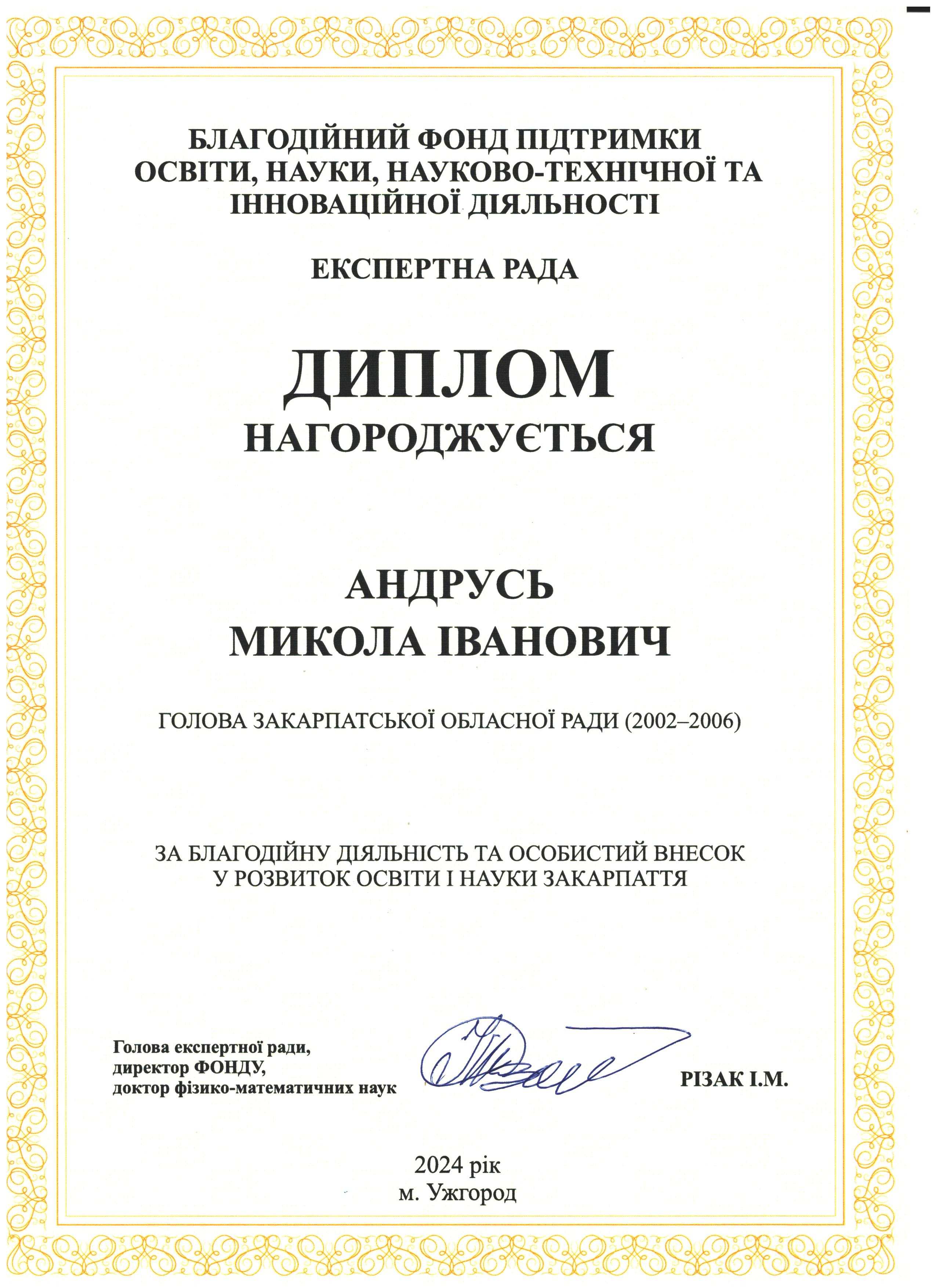 Дякуємо Миколі Івановичу Андрусю за підтримку освіти і науки Закарпаття!