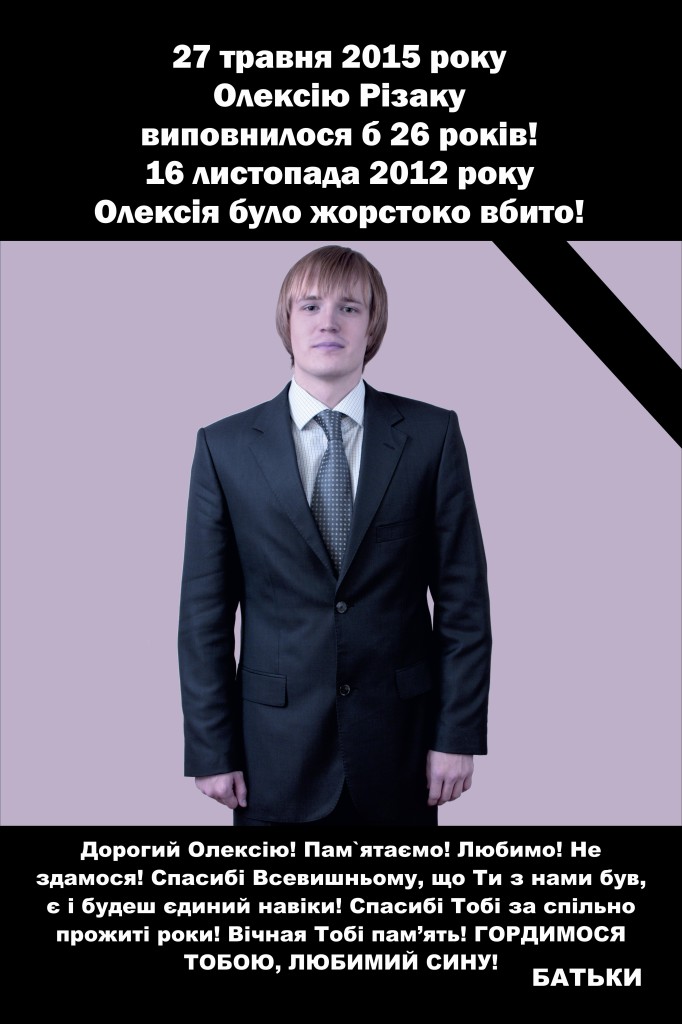 16 листопада 2012 року Олексій Різак був жорстоко вбитий.